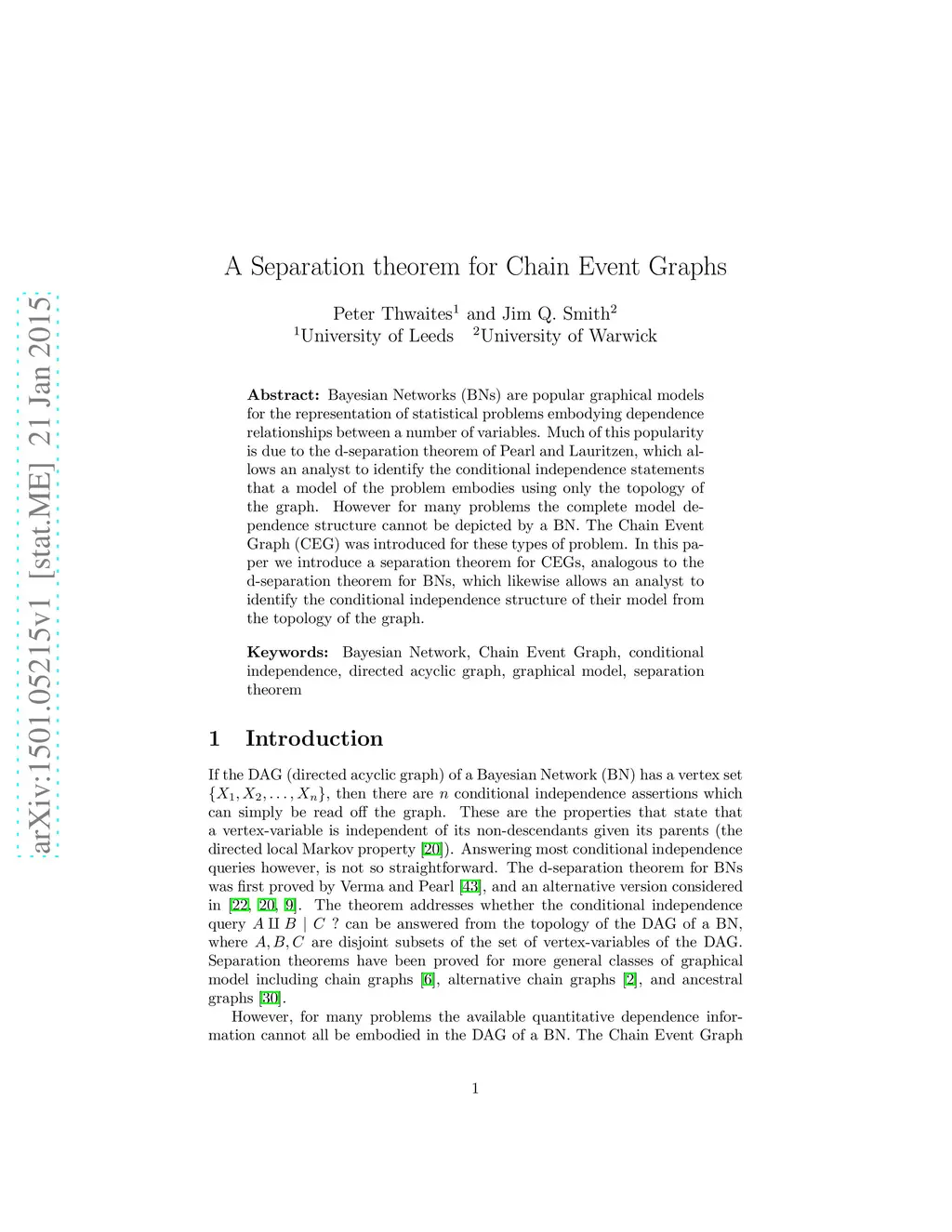 Bayesian Networks (BNs) are popular graphical models for the representation of statistical problems embodying dependence relationships between a number of variables. Much of this popularity is due to the d-separation theorem of Pearl and Lauritzen, which allows an analyst to identify the conditional independence statements that a model of the problem embodies using only the topology of the graph. However for many problems the complete model dependence structure cannot be depicted by a BN. The Chain Event Graph (CEG) was introduced for these types of problem. In this paper we introduce a separation theorem for CEGs, analogous to the d-separation theorem for BNs, which likewise allows an analyst to identify the conditional independence structure of their model from the topology of the graph.