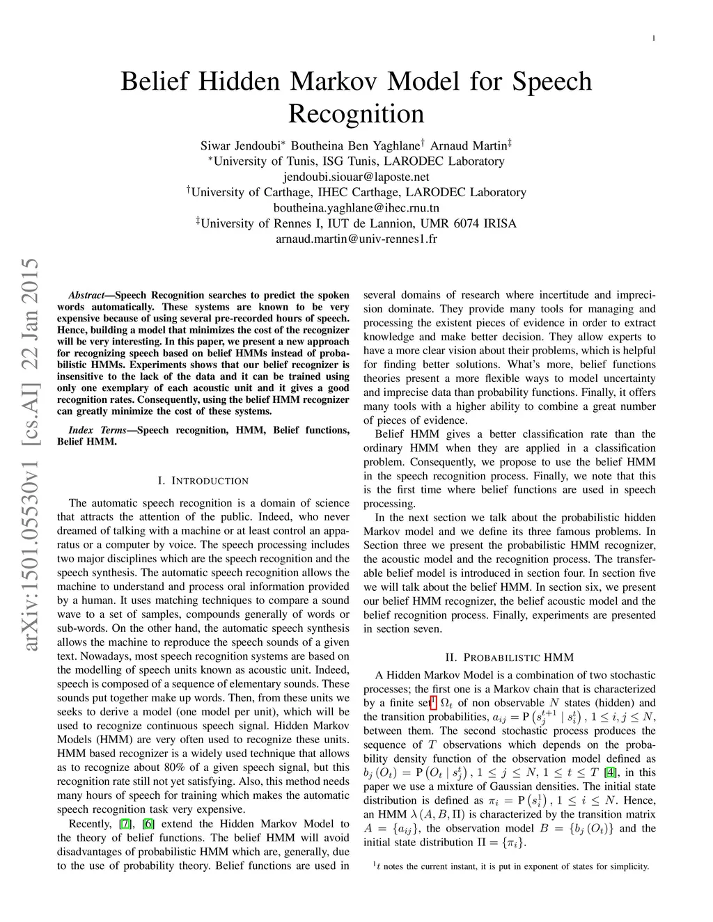 Belief Hidden Markov Model for speech recognition
