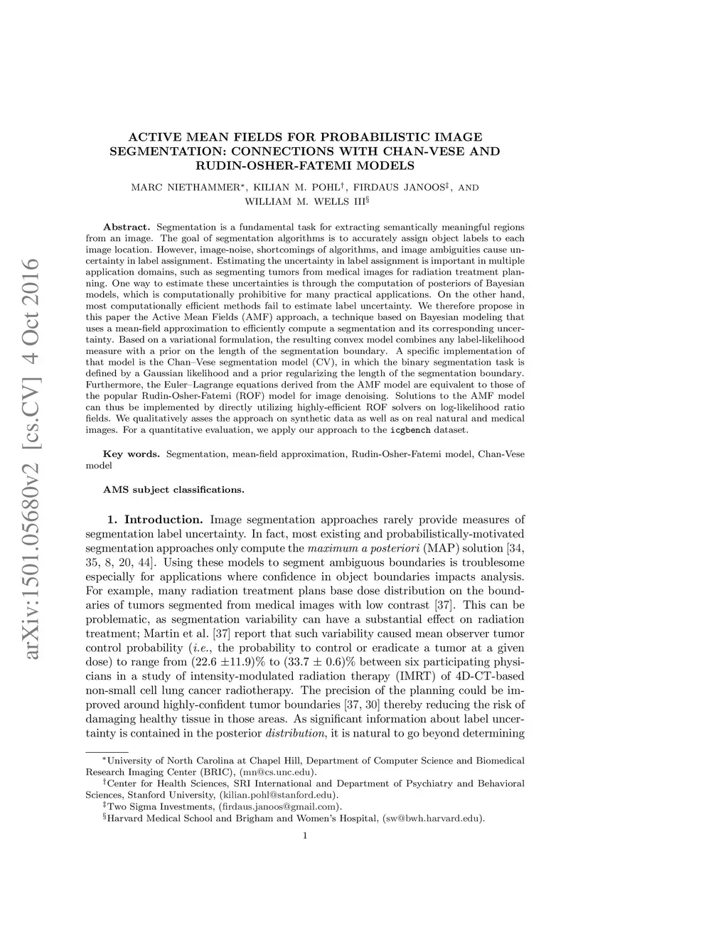 Active Mean Fields for Probabilistic Image Segmentation: Connections