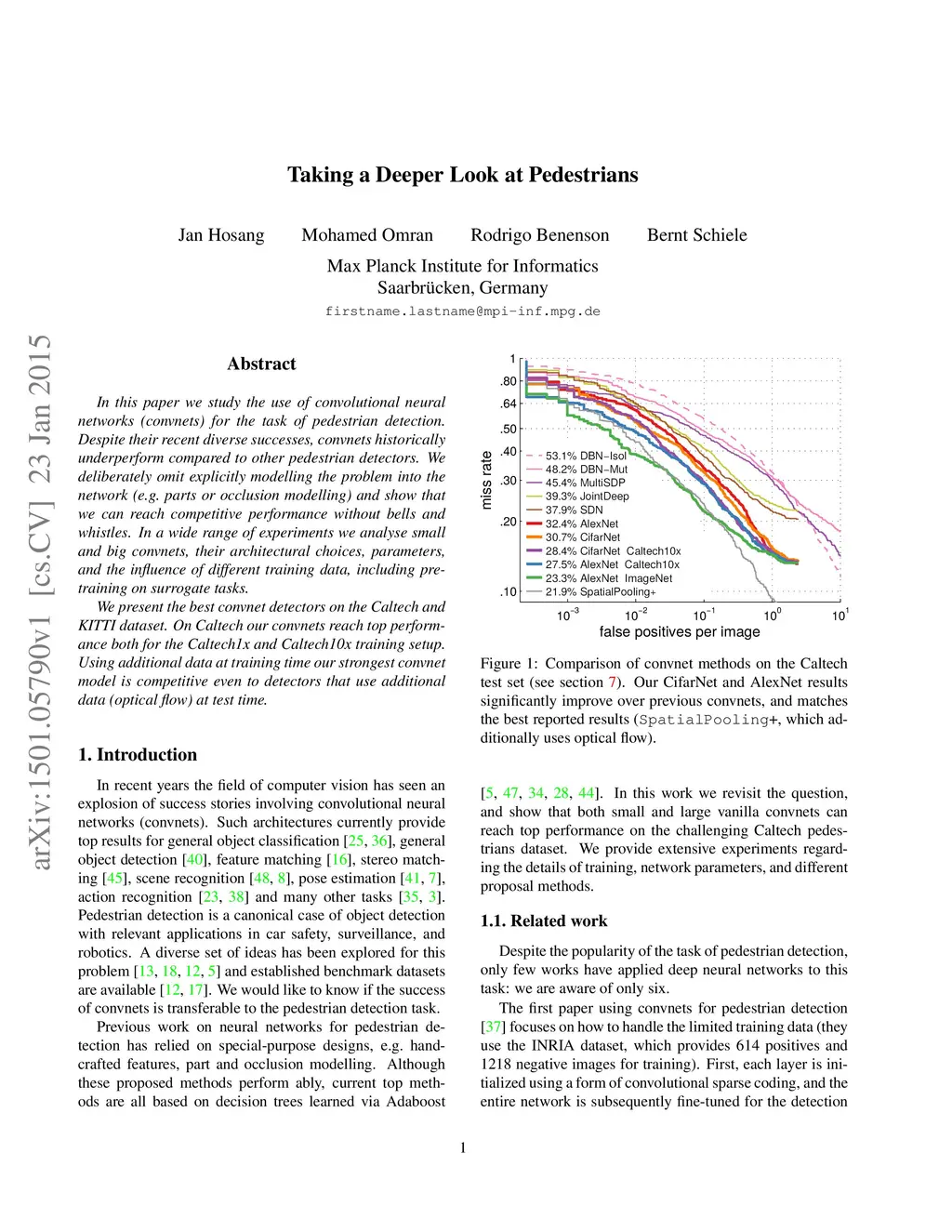 In this paper we study the use of convolutional neural networks (convnets) for the task of pedestrian detection. Despite their recent diverse successes, convnets historically underperform compared to other pedestrian detectors. We deliberately omit explicitly modelling the problem into the network (e.g. parts or occlusion modelling) and show that we can reach competitive performance without bells and whistles. In a wide range of experiments we analyse small and big convnets, their architectural choices, parameters, and the influence of different training data, including pre-training on surrogate tasks. We present the best convnet detectors on the Caltech and KITTI dataset. On Caltech our convnets reach top performance both for the Caltech1x and Caltech10x training setup. Using additional data at training time our strongest convnet model is competitive even to detectors that use additional data (optical flow) at test time.