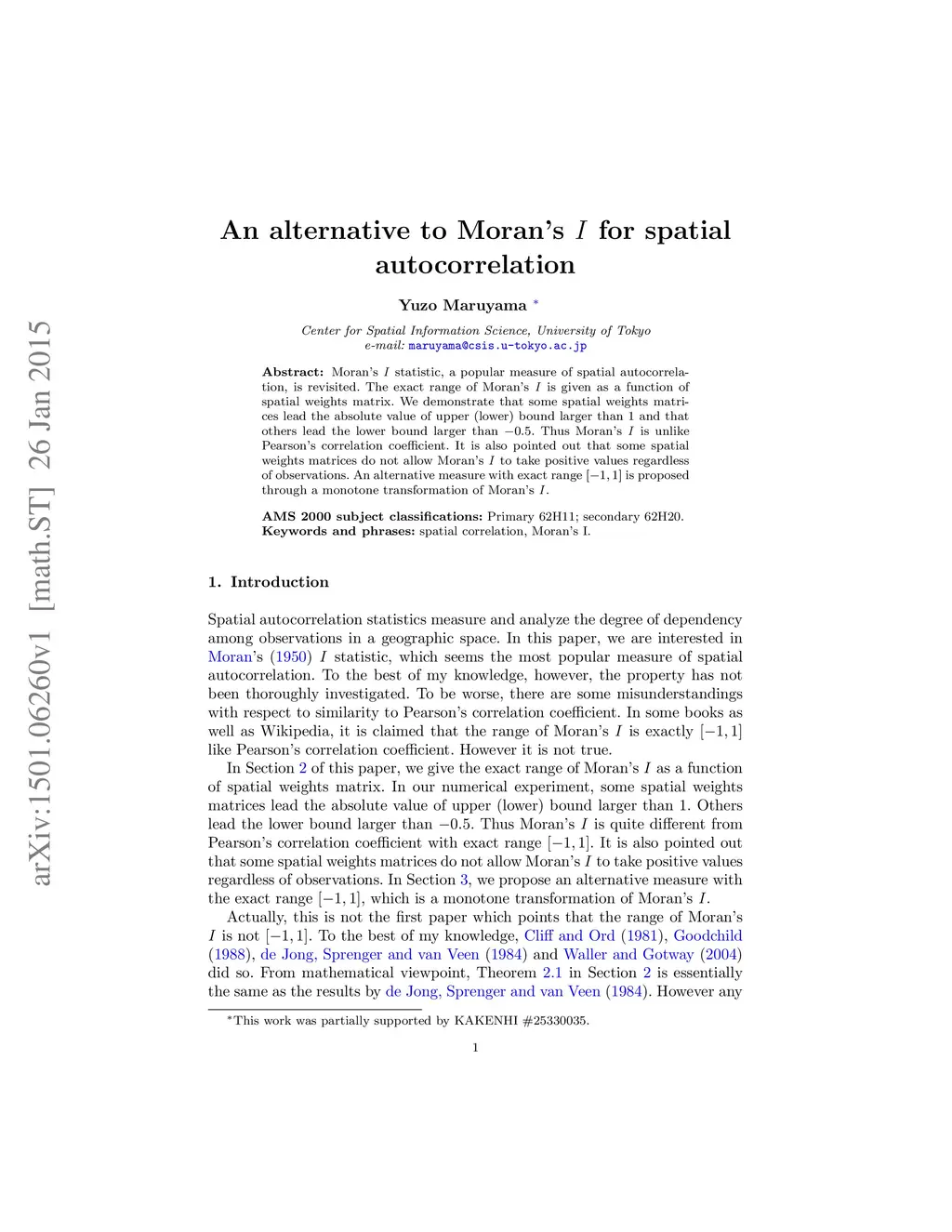 Moran's I statistic, a popular measure of spatial autocorrelation, is revisited. The exact range of Moran's I is given as a function of spatial weights matrix. We demonstrate that some spatial weights matrices lead the absolute value of upper (lower) bound larger than 1 and that others lead the lower bound larger than -0.5. Thus Moran's I is unlike Pearson's correlation coefficient. It is also pointed out that some spatial weights matrices do not allow Moran's I to take positive values regardless of observations. An alternative measure with exact range [-1,1] is proposed through a monotone transformation of Moran's I.