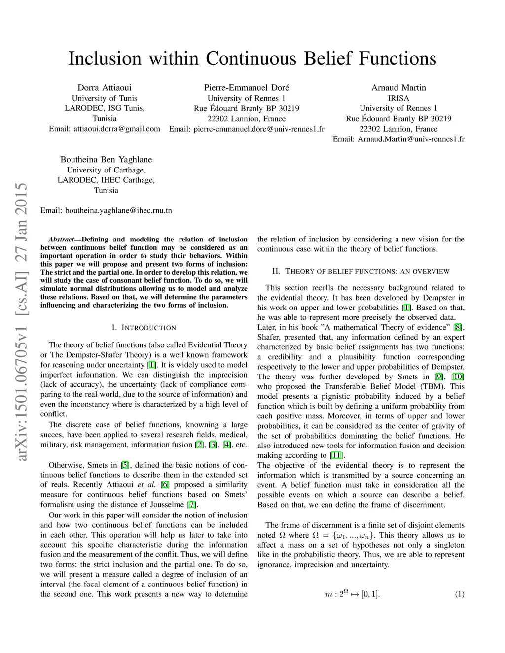 Inclusion within Continuous Belief Functions