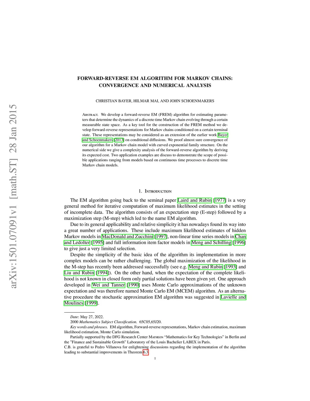 Forward-reverse EM algorithm for Markov chains: convergence and