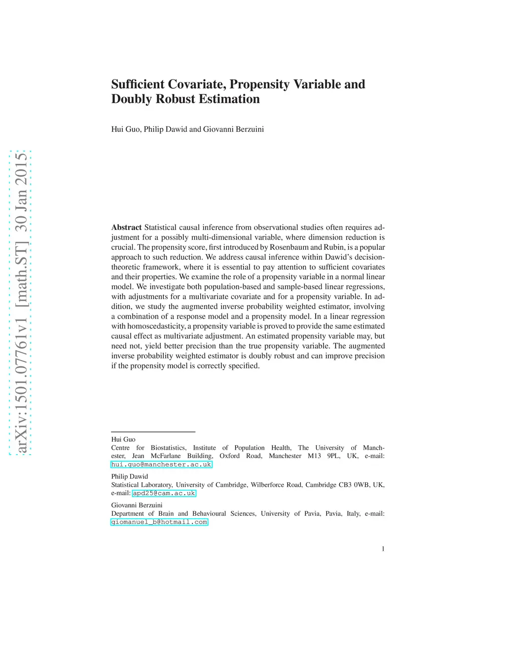Sufficient Covariate, Propensity Variable and Doubly Robust Estimation