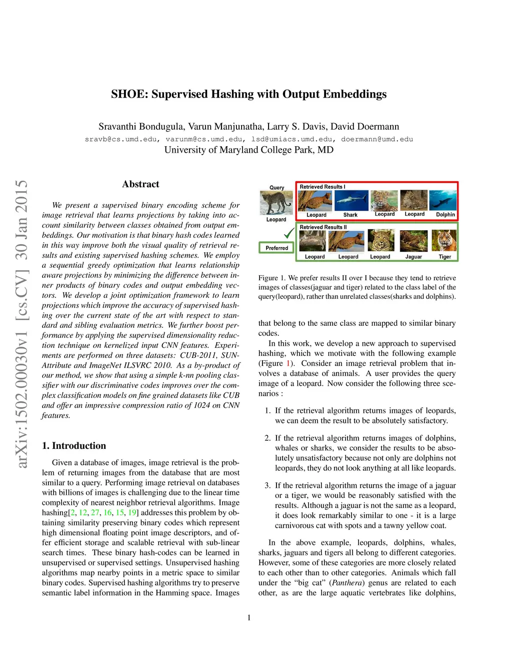 SHOE: Supervised Hashing with Output Embeddings