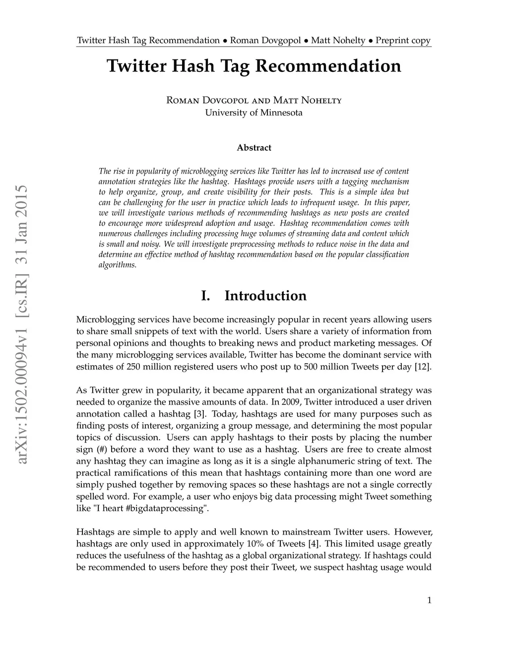 Twitter Hash Tag Recommendation