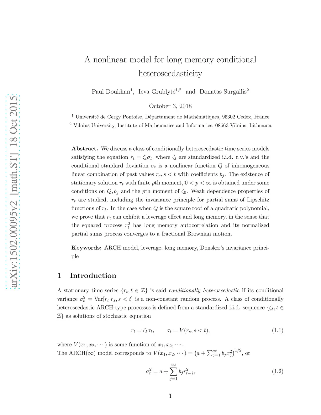 A nonlinear model for long memory conditional heteroscedasticity