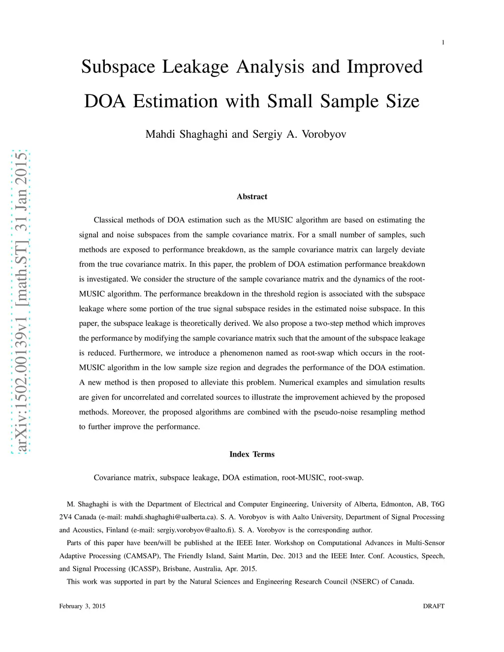 Subspace Leakage Analysis and Improved DOA Estimation with Small Sample