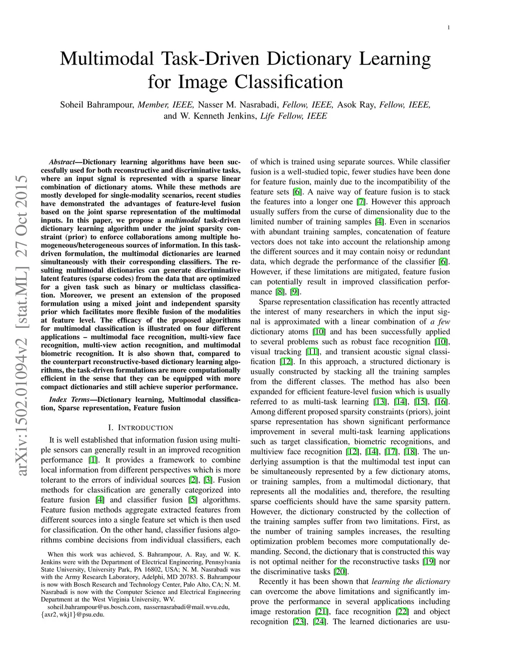 Multimodal Task-Driven Dictionary Learning for Image Classification