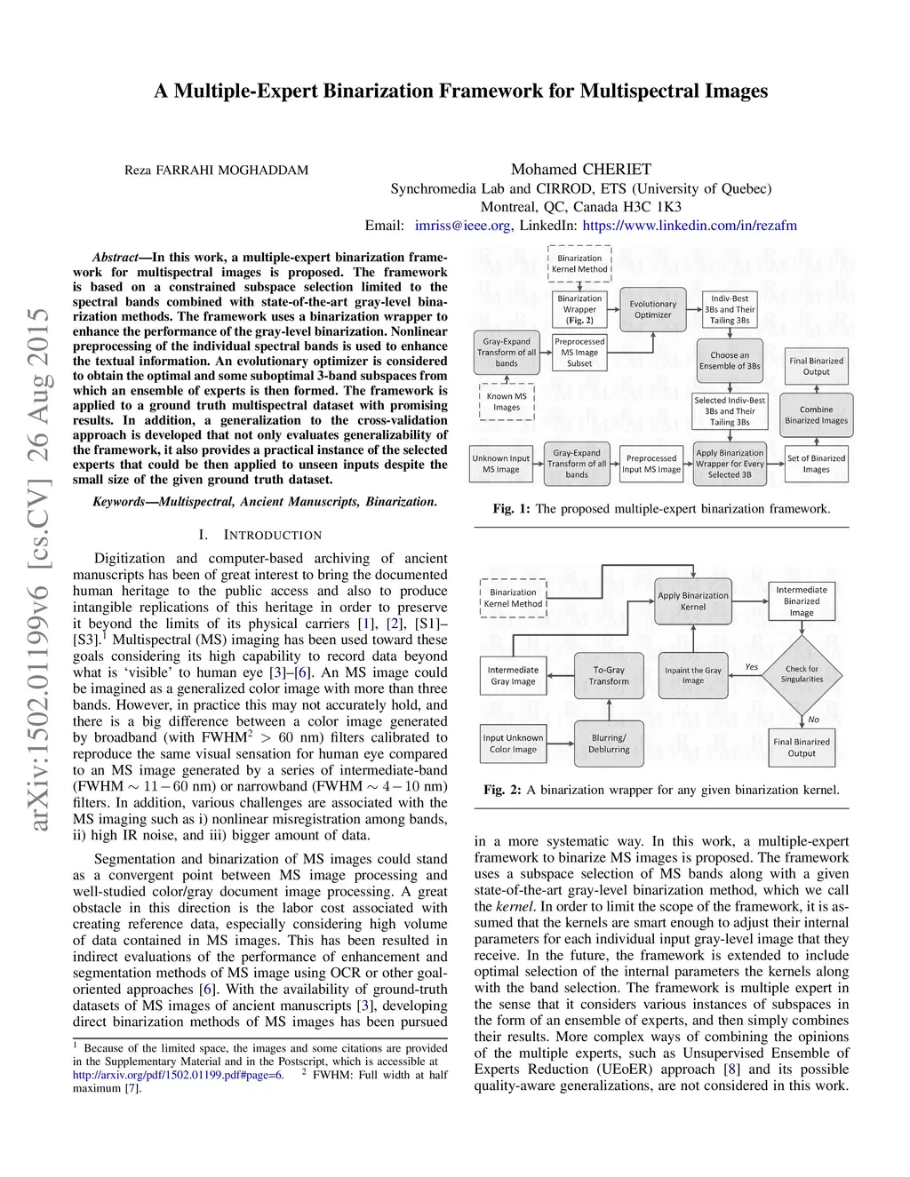 A Multiple-Expert Binarization Framework for Multispectral Images