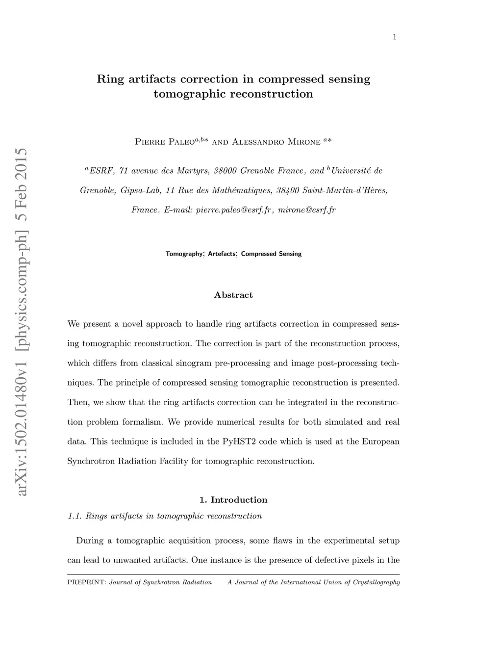 Ring artifacts correction in compressed sensing tomographic