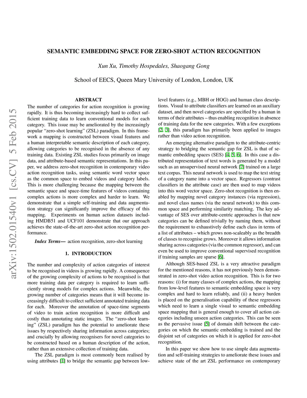 Semantic Embedding Space for Zero-Shot Action Recognition