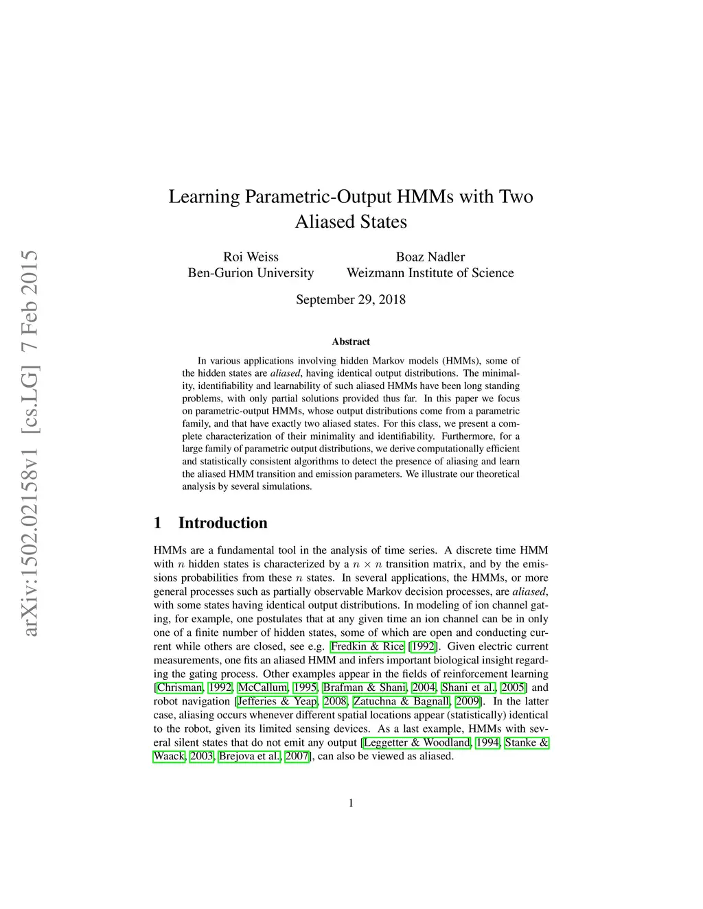 Learning Parametric-Output HMMs with Two Aliased States