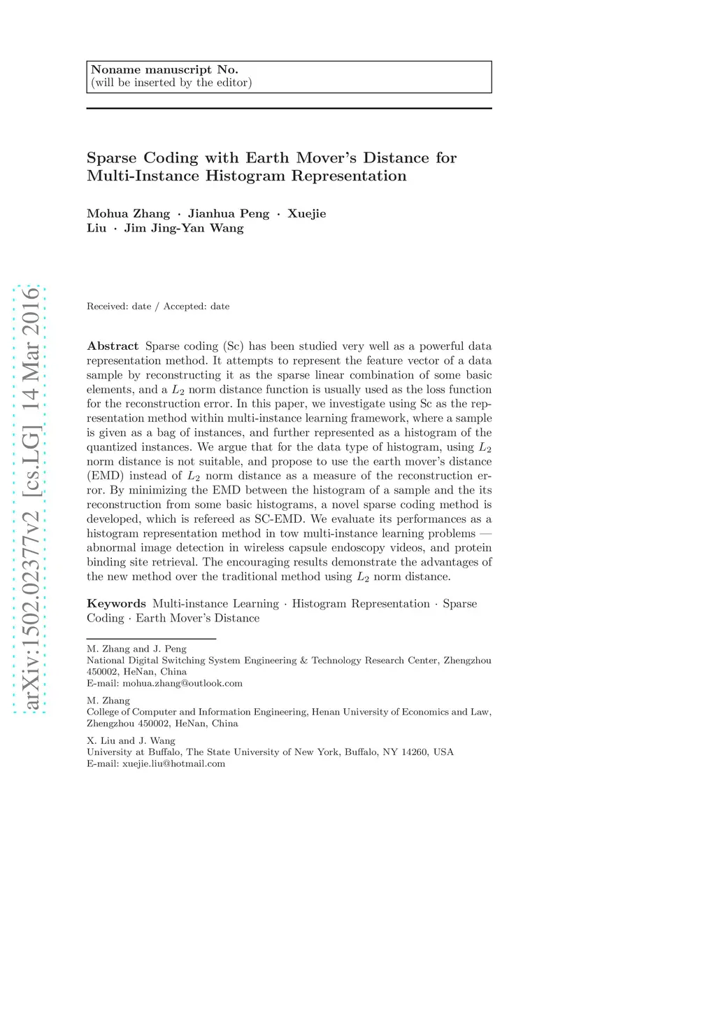 Sparse Coding with Earth Mover's Distance for Multi-Instance Histogram