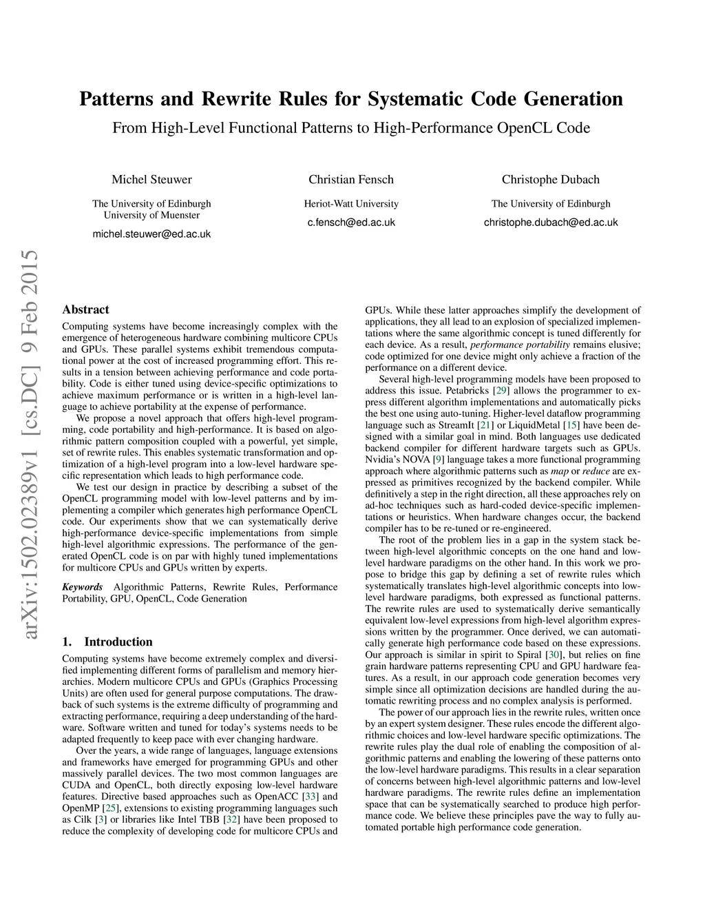 High-Level Functional Patterns to High-Performance OpenCL Code)