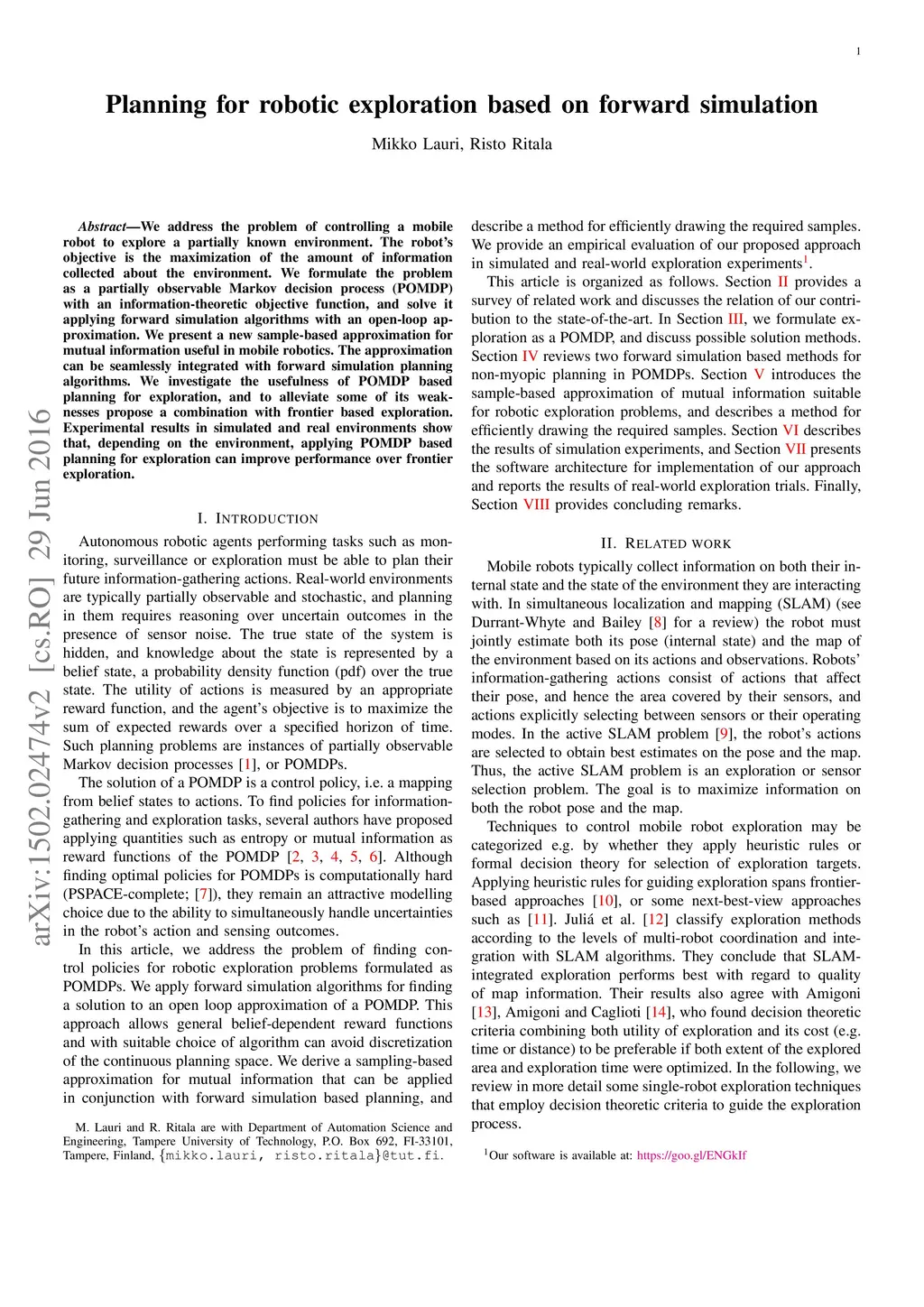 Planning for robotic exploration based on forward simulation