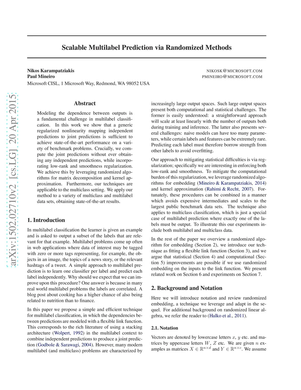 We propose an efficient technique for multilabel classification based on calibration, a term we use to mean learning a link function that maps independent predictions to joint predictions. Though a naive implementation of our proposal would require training individual classifiers for each label, we show that for natural datasets and linear classifiers we can sidestep this by leveraging techniques from randomized linear algebra. Moreover, our algorithm applies equally well to multiclass classification. The end result is an algorithm that scales to very large multilabel and multiclass problems, and offers state of the art accuracy on many datasets.