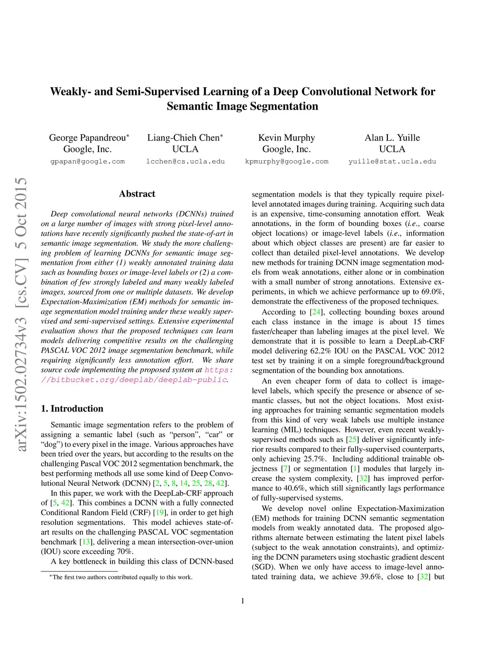 Weakly- and Semi-Supervised Learning of a DCNN for Semantic Image
