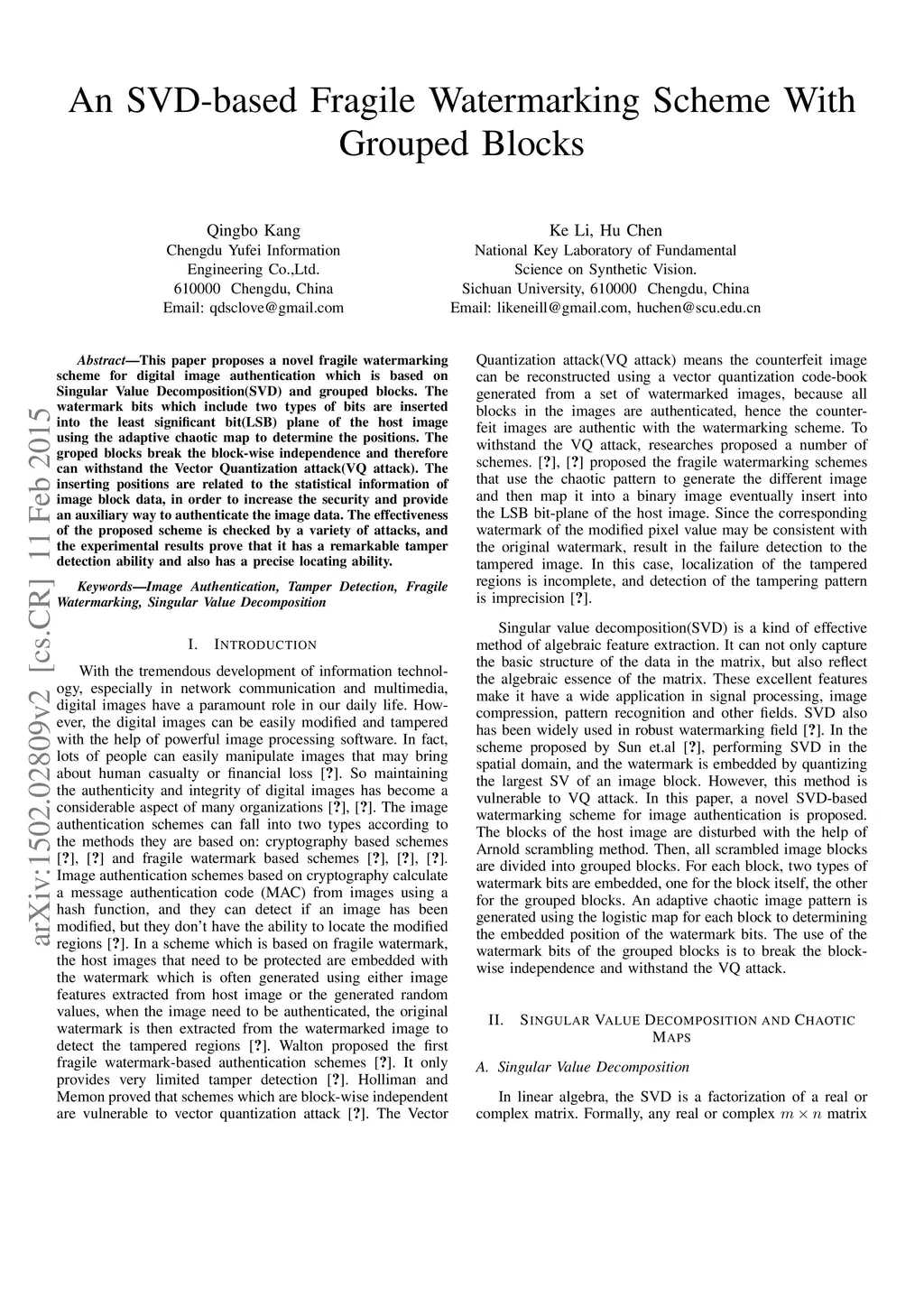 An SVD-based Fragile Watermarking Scheme With Grouped Blocks