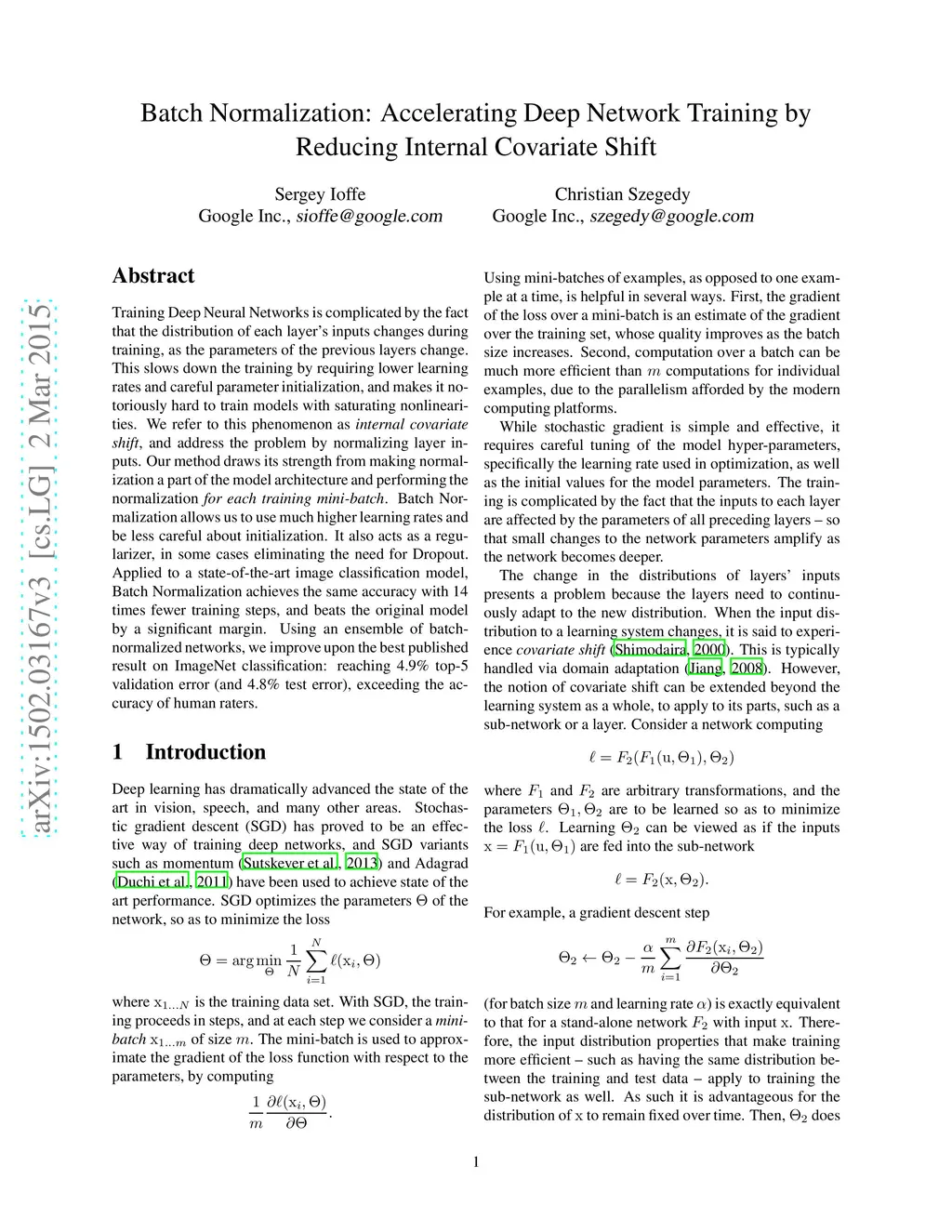 Batch Normalization: Accelerating Deep Network Training by Reducing