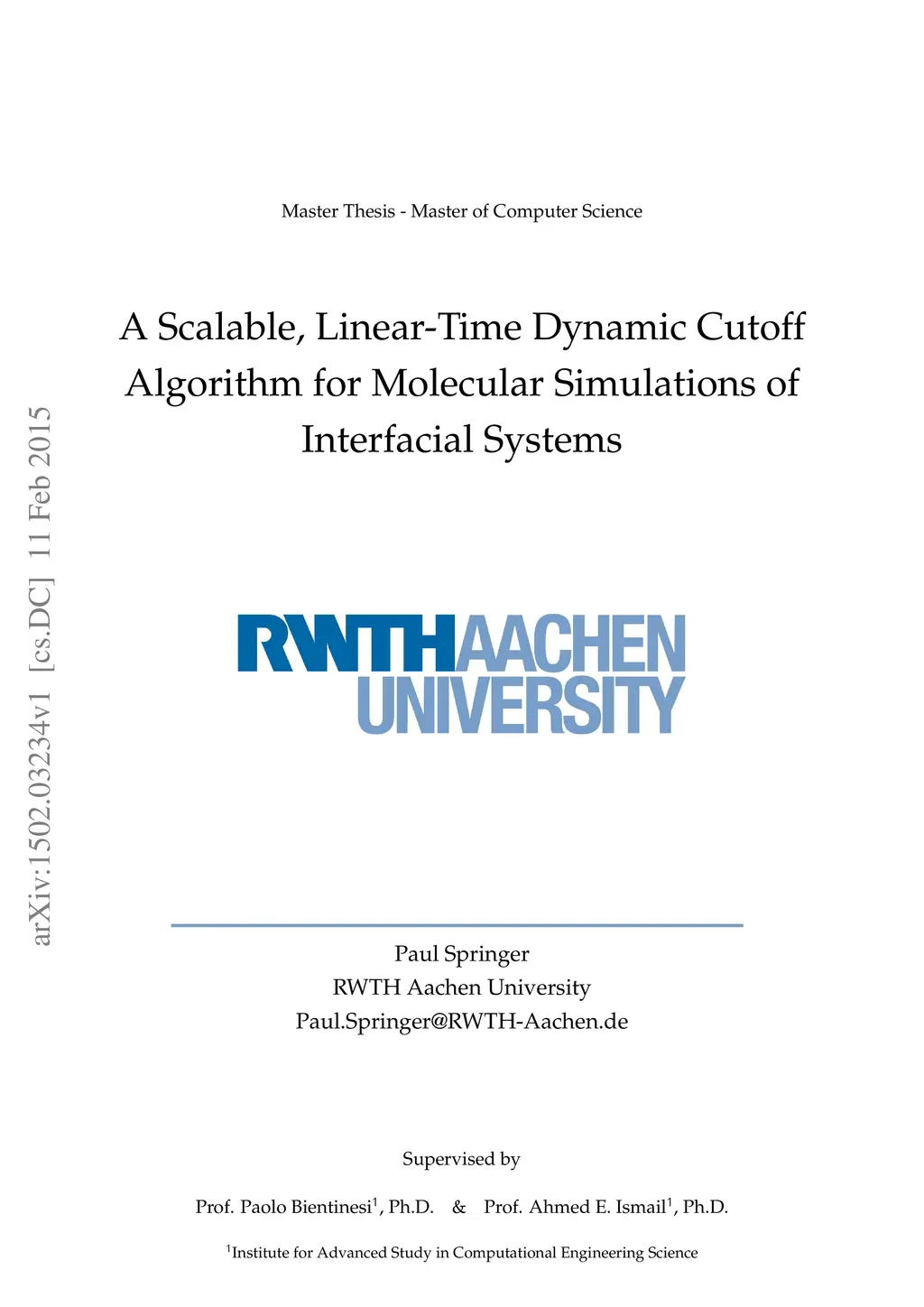 This master thesis introduces the idea of dynamic cutoffs in molecular dynamics simulations, based on the distance between particles and the interface, and presents a solution for detecting interfaces in real-time. Our dynamic cutoff method (DCM) exhibits a linear-time complexity as well as nearly ideal weak and strong scaling. The DCM is tailored for massively parallel architectures and for large interfacial systems with millions of particles. We implemented the DCM as part of the LAMMPS open-source molecular dynamics package and demonstrate the nearly ideal weak- and strong-scaling behavior of this method on an IBM BlueGene/Q supercomputer. Our results for a liquid/vapor system consisting of Lennard-Jones particles show that the accuracy of DCM is comparable to that of the traditional particle-particle particle- mesh (PPPM) algorithm. The performance comparison indicates that DCM is preferable for large systems due to the limited scaling of FFTs within the PPPM algorithm. Moreover, the DCM requires the interface to be identified every other MD timestep. As a consequence, this thesis also presents an interface detection method which is (1) applicable in real time; (2) parallelizable; and (3) scales linearly with respect to the number of particles.