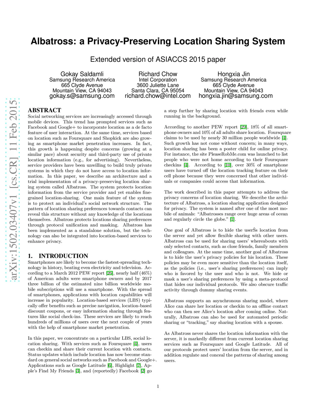 Albatross: a Privacy-Preserving Location Sharing System