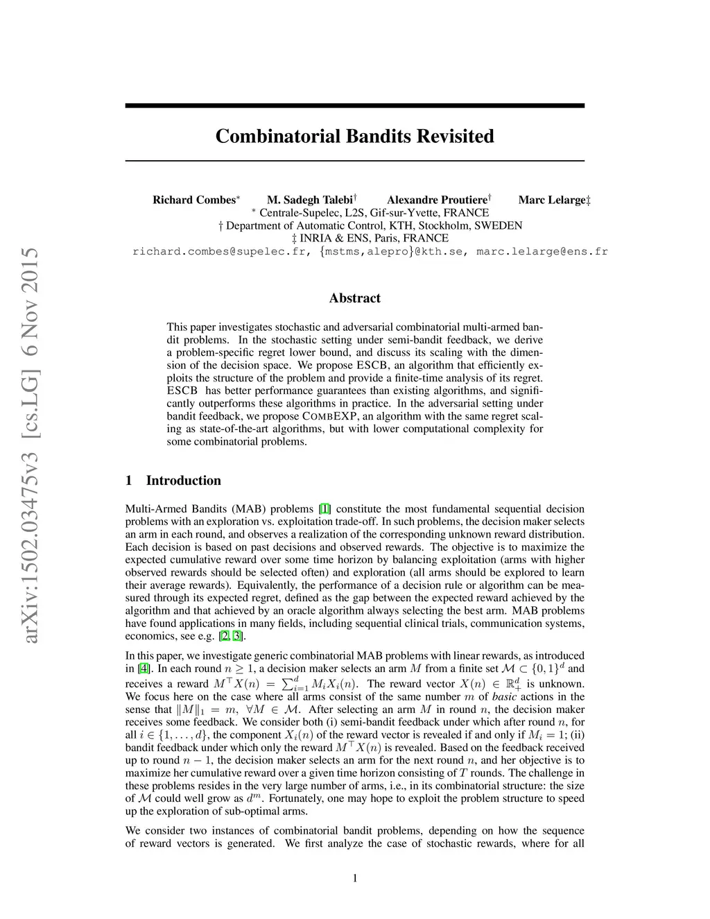 Combinatorial Bandits Revisited