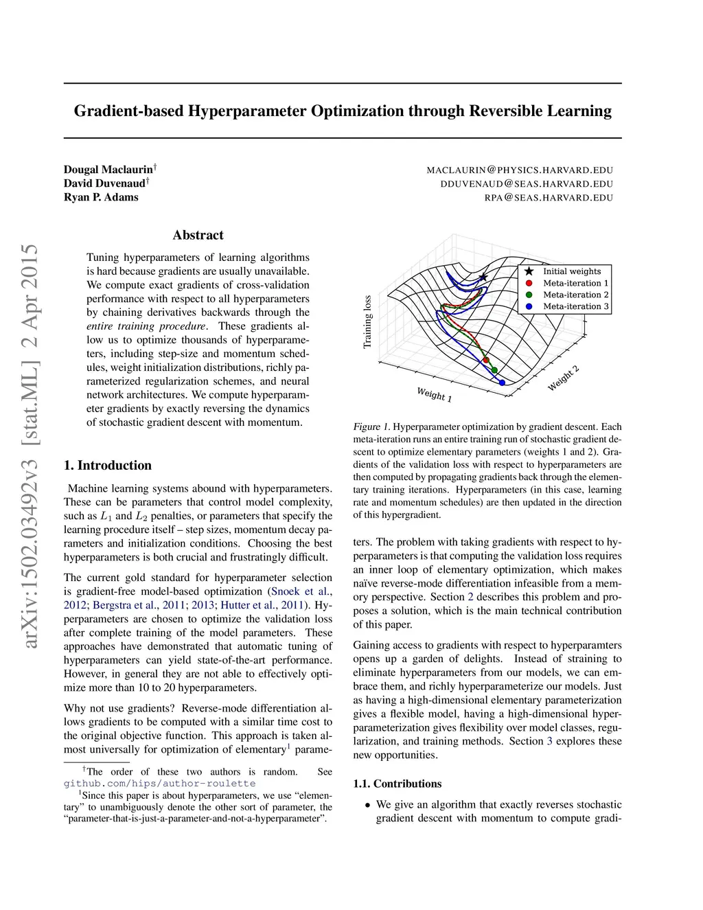 Gradient-based Hyperparameter Optimization through Reversible Learning