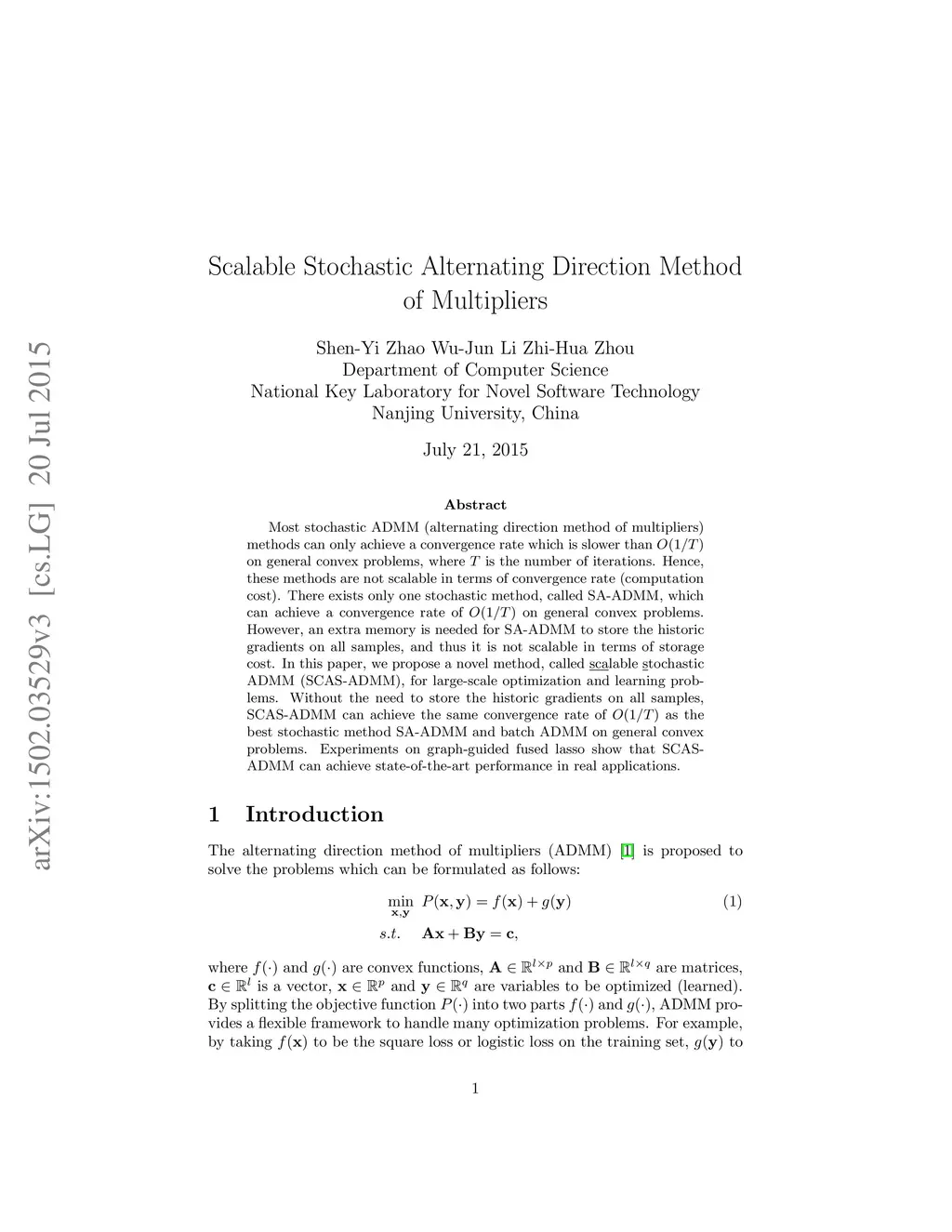 Scalable Stochastic Alternating Direction Method of Multipliers