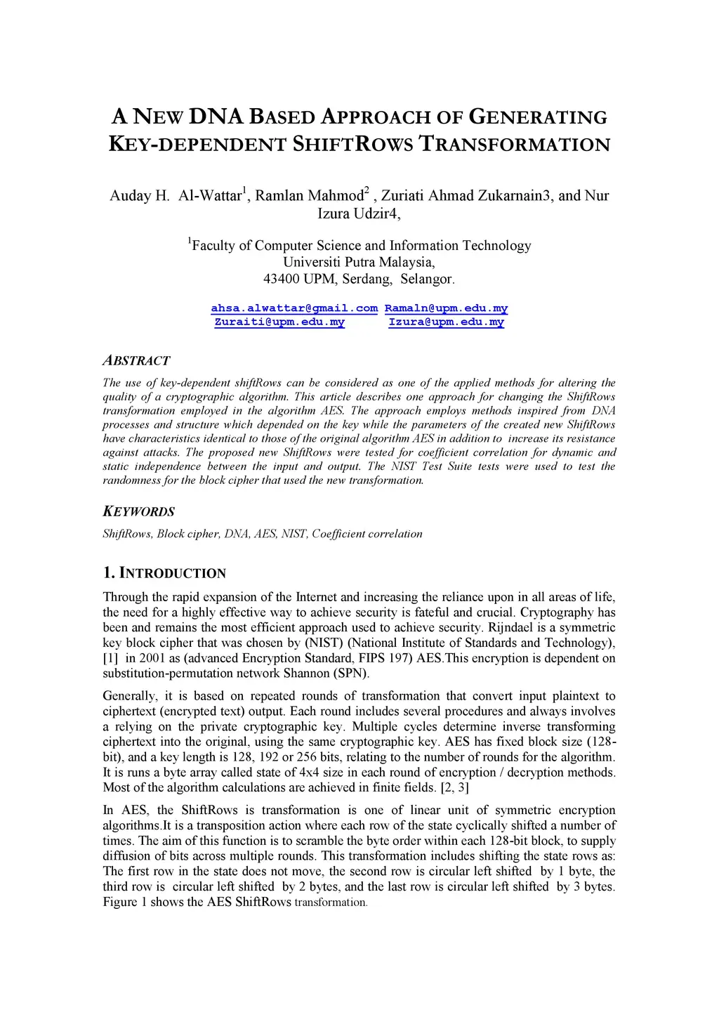 A New DNA-Based Approach of Generating Key-dependent ShiftRows