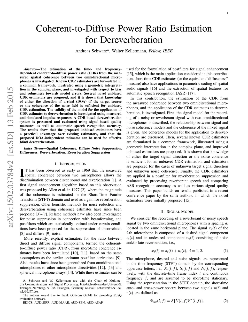 Coherent-to-Diffuse Power Ratio Estimation for Dereverberation
