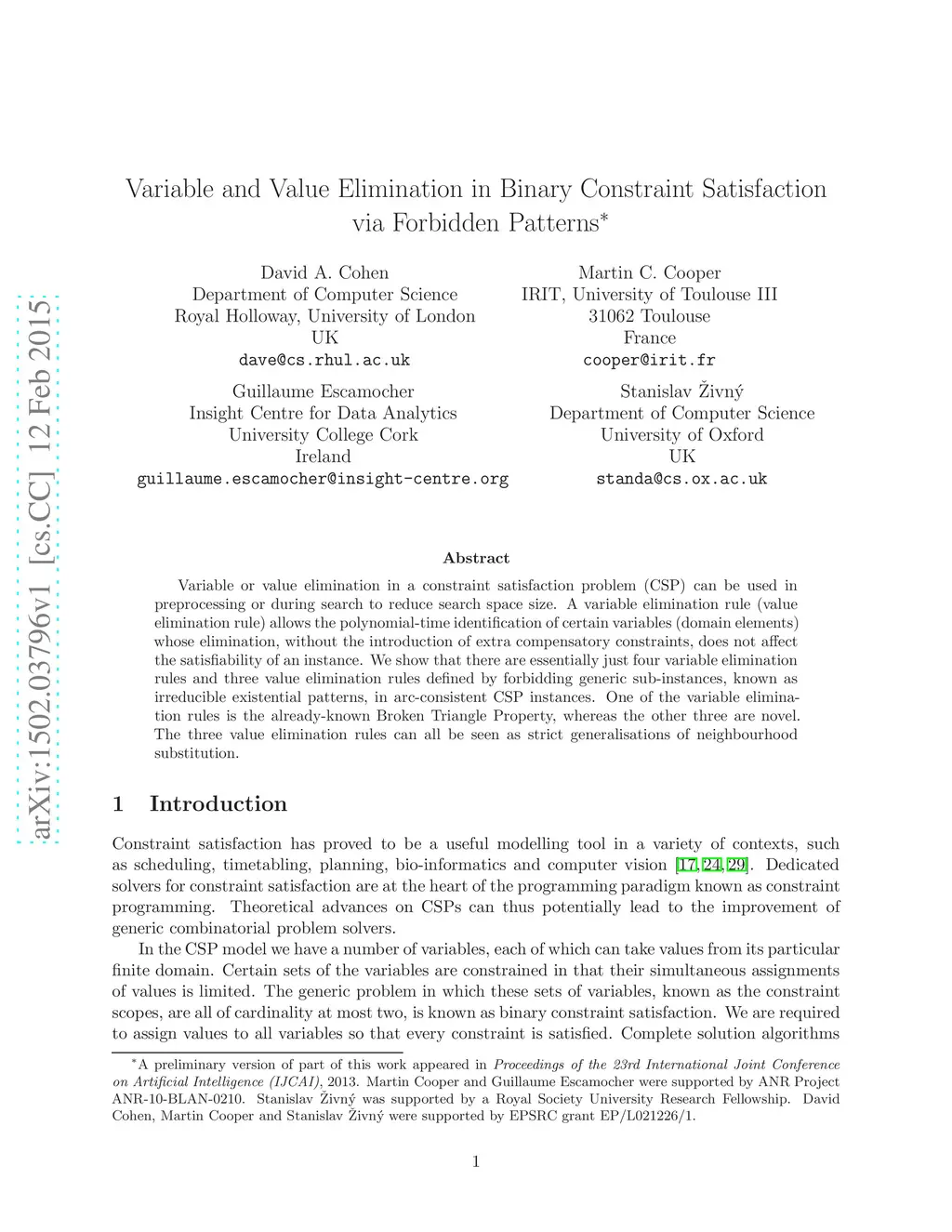 Variable or value elimination in a constraint satisfaction problem (CSP) can be used in preprocessing or during search to reduce search space size. A variable elimination rule (value elimination rule) allows the polynomial-time identification of certain variables (domain elements) whose elimination, without the introduction of extra compensatory constraints, does not affect the satisfiability of an instance. We show that there are essentially just four variable elimination rules and three value elimination rules defined by forbidding generic sub-instances, known as irreducible existential patterns, in arc-consistent CSP instances. One of the variable elimination rules is the already-known Broken Triangle Property, whereas the other three are novel. The three value elimination rules can all be seen as strict generalisations of neighbourhood substitution.