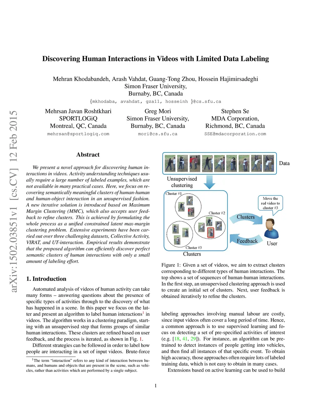 Discovering Human Interactions in Videos with Limited Data Labeling