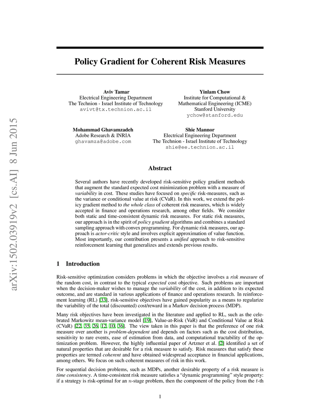 Policy Gradient for Coherent Risk Measures