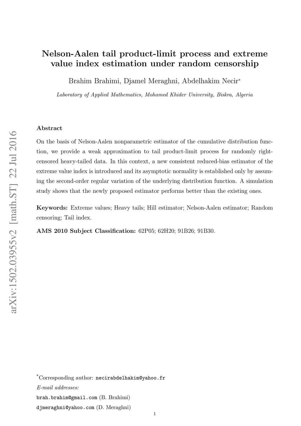 Nelson-Aalen tail product-limit process and extreme value index