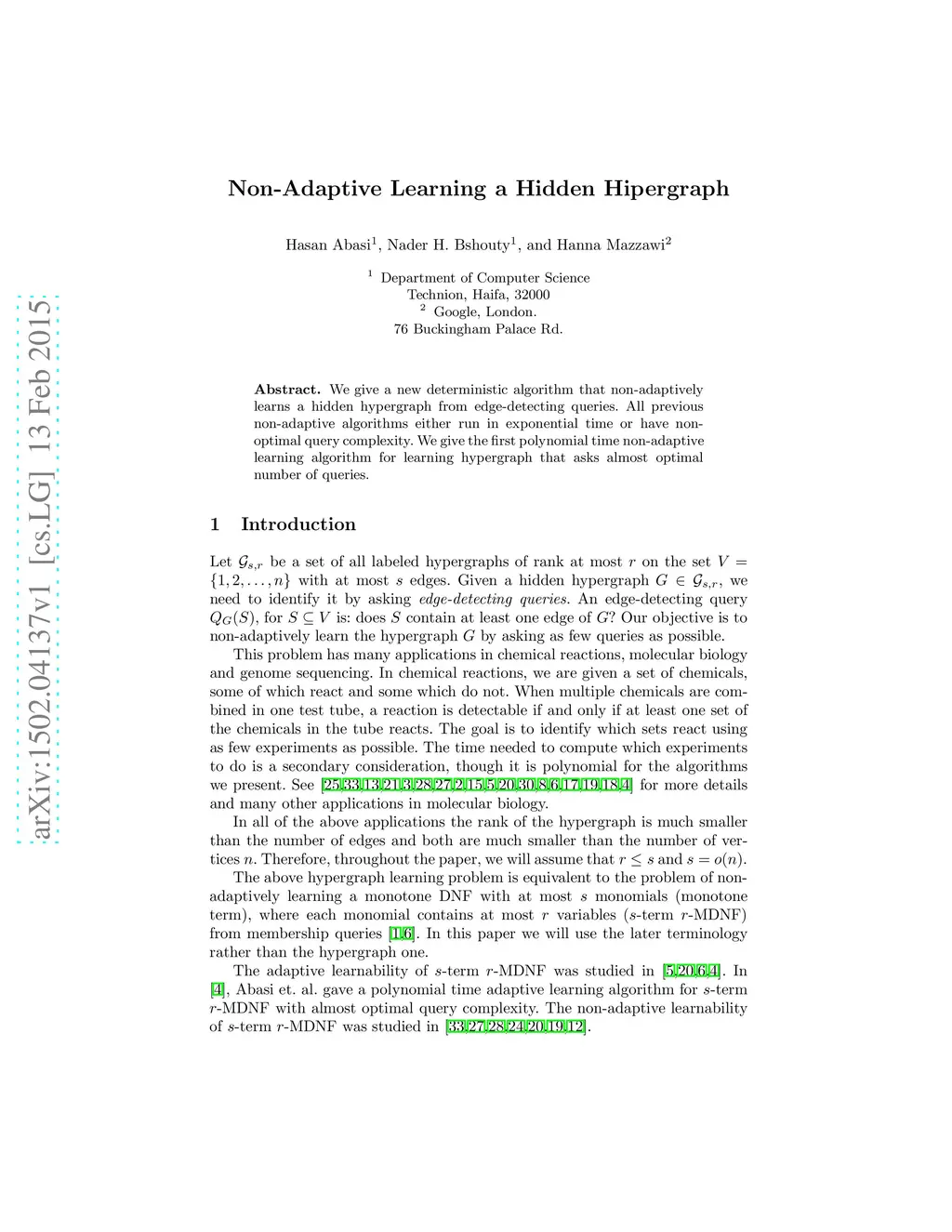 We give a new deterministic algorithm that non-adaptively learns a hidden hypergraph from edge-detecting queries. All previous non-adaptive algorithms either run in exponential time or have non-optimal query complexity. We give the first polynomial time non-adaptive learning algorithm for learning hypergraph that asks almost optimal number of queries.