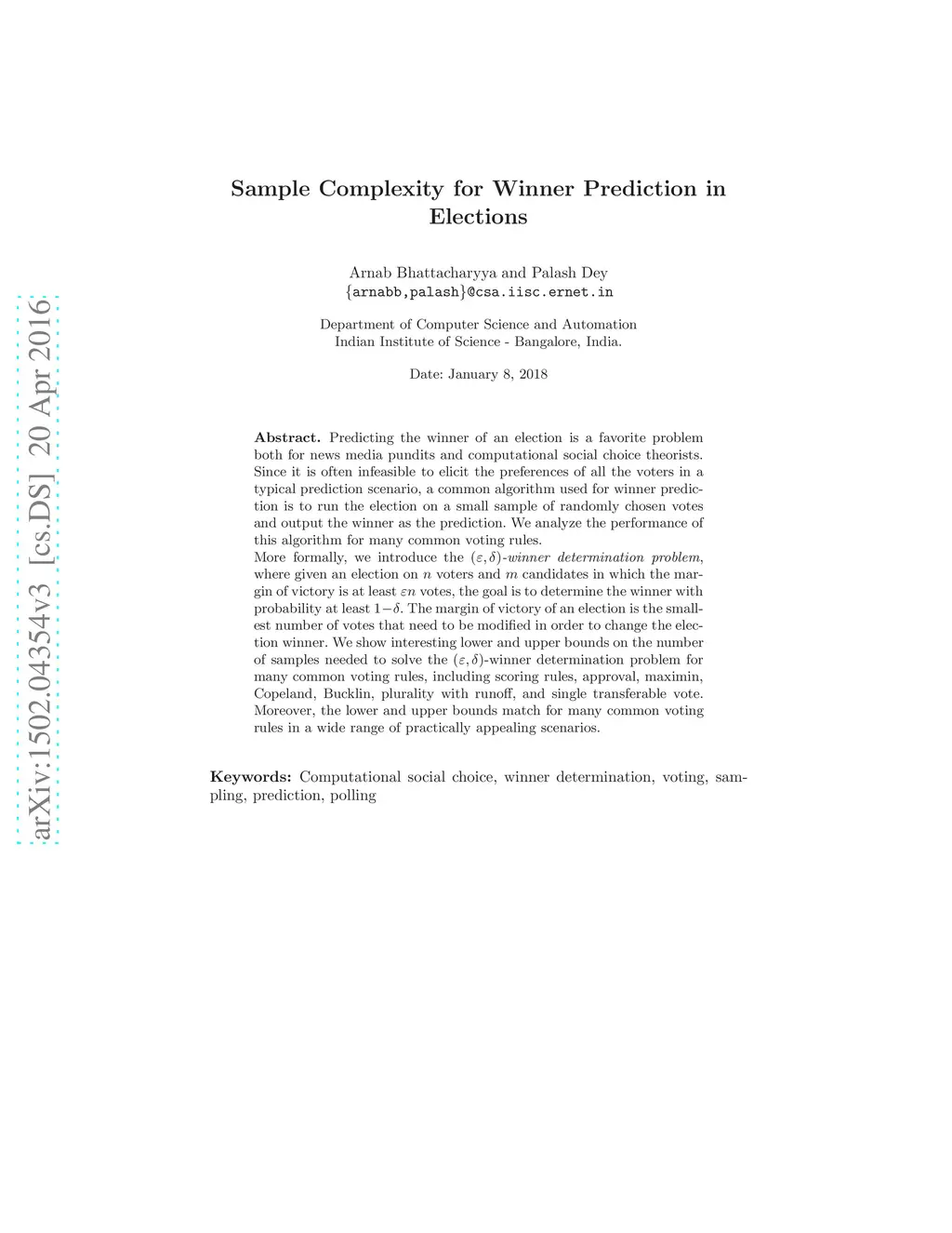 Predicting the winner of an election is a favorite problem both for news media pundits and computational social choice theorists. Since it is often infeasible to elicit the preferences of all the voters in a typical prediction scenario, a common algorithm used for winner prediction is to run the election on a small sample of randomly chosen votes and output the winner as the prediction. We analyze the performance of this algorithm for many common voting rules. More formally, we introduce the -winner determination problem, where given an election on voters and candidates in which the margin of victory is at least votes, the goal is to determine the winner with probability at least . The margin of victory of an election is the smallest number of votes that need to be modified in order to change the election winner. We show interesting lower and upper bounds on the number of samples needed to solve the -winner determination problem for many common voting rules, including scoring rules, approval, maximin, Copeland, Bucklin, plurality with runoff, and single transferable vote. Moreover, the lower and upper bounds match for many common voting rules in a wide range of practically appealing scenarios.