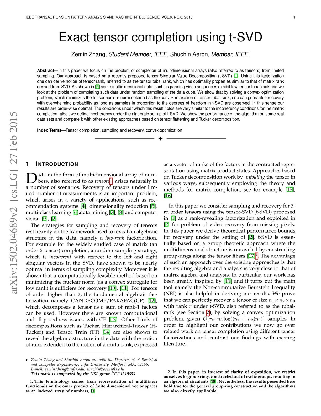 Exact tensor completion using t-SVD