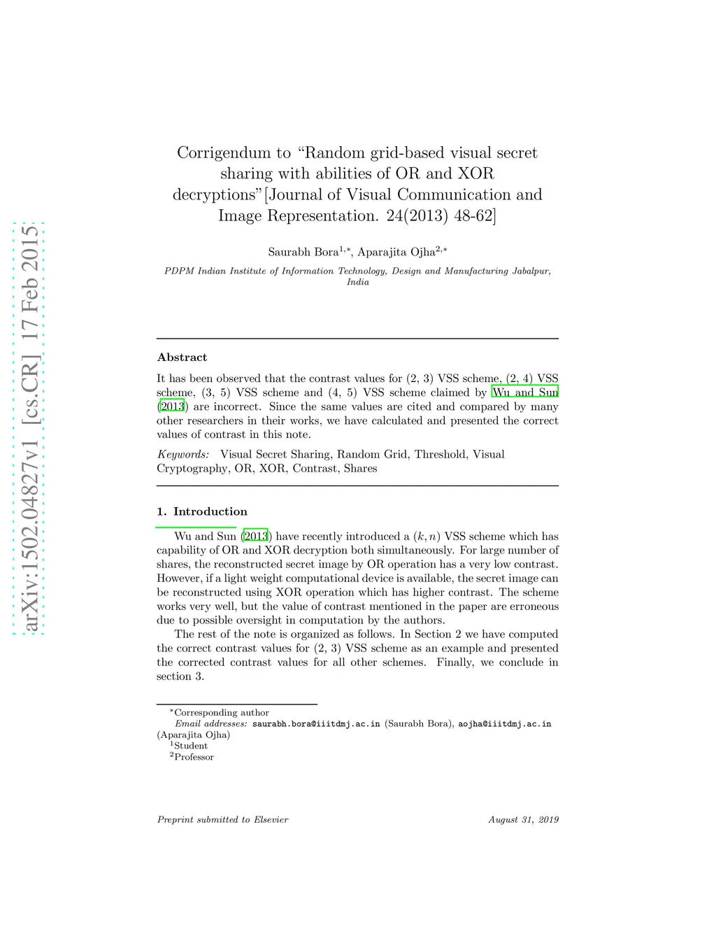 of OR and XOR decryptions"[Journal of Visual Communication and Image