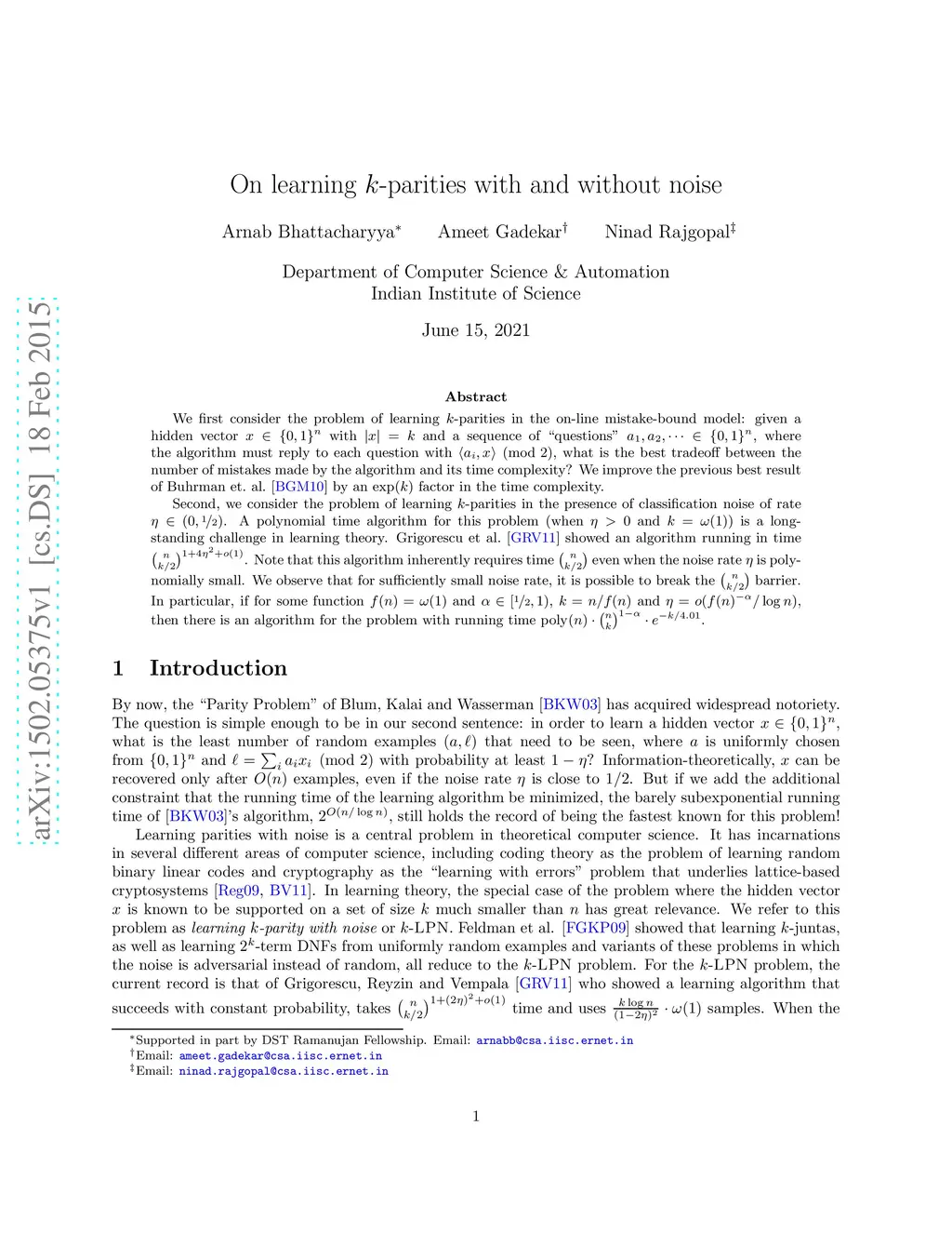 We first consider the problem of learning -parities in the on-line mistake-bound model: given a hidden vector with and a sequence of "questions" , where the algorithm must reply to each question with , what is the best tradeoff between the number of mistakes made by the algorithm and its time complexity? We improve the previous best result of Buhrman et al. by an factor in the time complexity. Second, we consider the problem of learning -parities in the presence of classification noise of rate . A polynomial time algorithm for this problem (when and ) is a longstanding challenge in learning theory. Grigorescu et al. showed an algorithm running in time . Note that this algorithm inherently requires time even when the noise rate is polynomially small. We observe that for sufficiently small noise rate, it is possible to break the barrier. In particular, if for some function and , and , then there is an algorithm for the problem with running time .