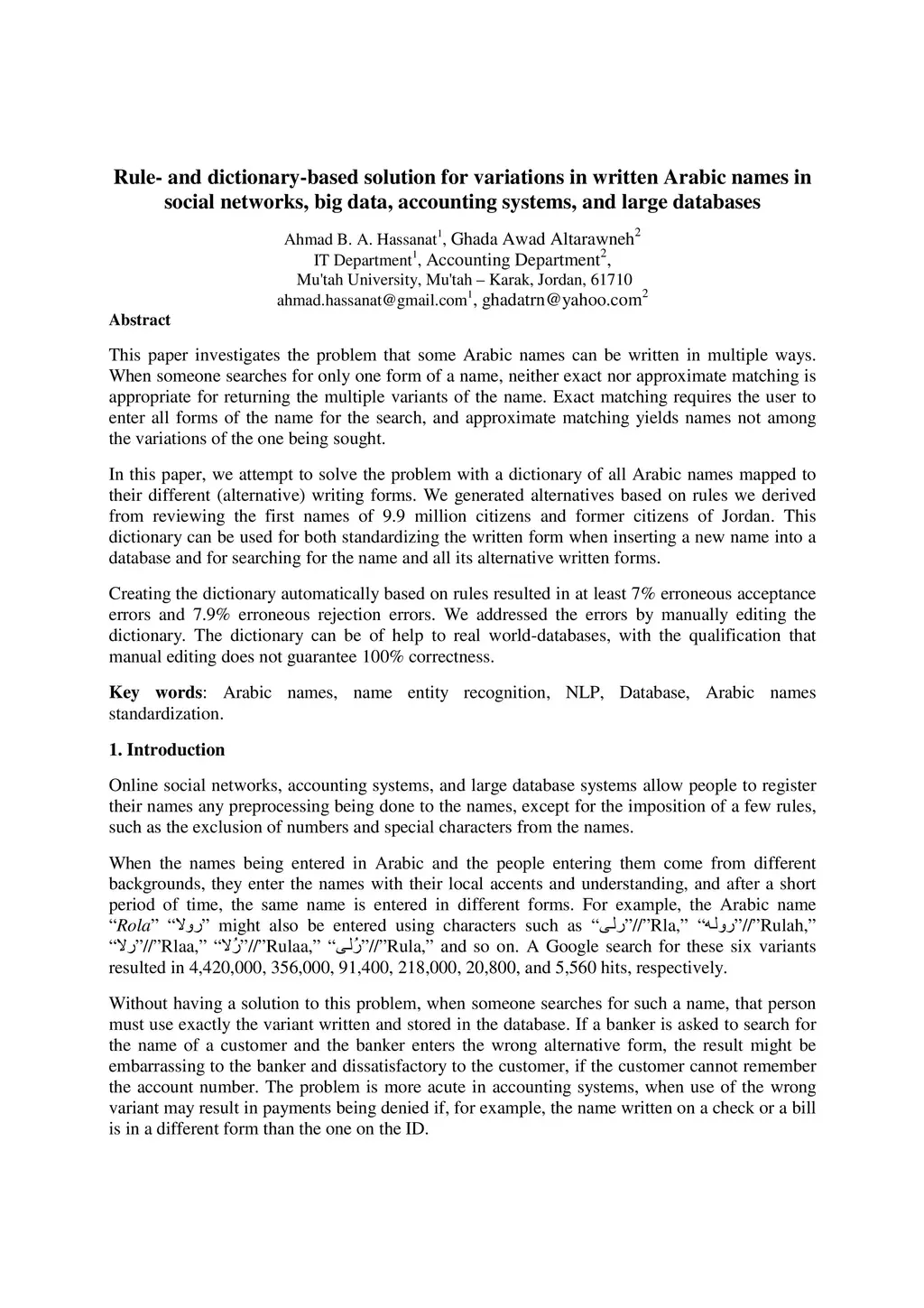Names in Social Networks, Big Data, Accounting Systems and Large Databases