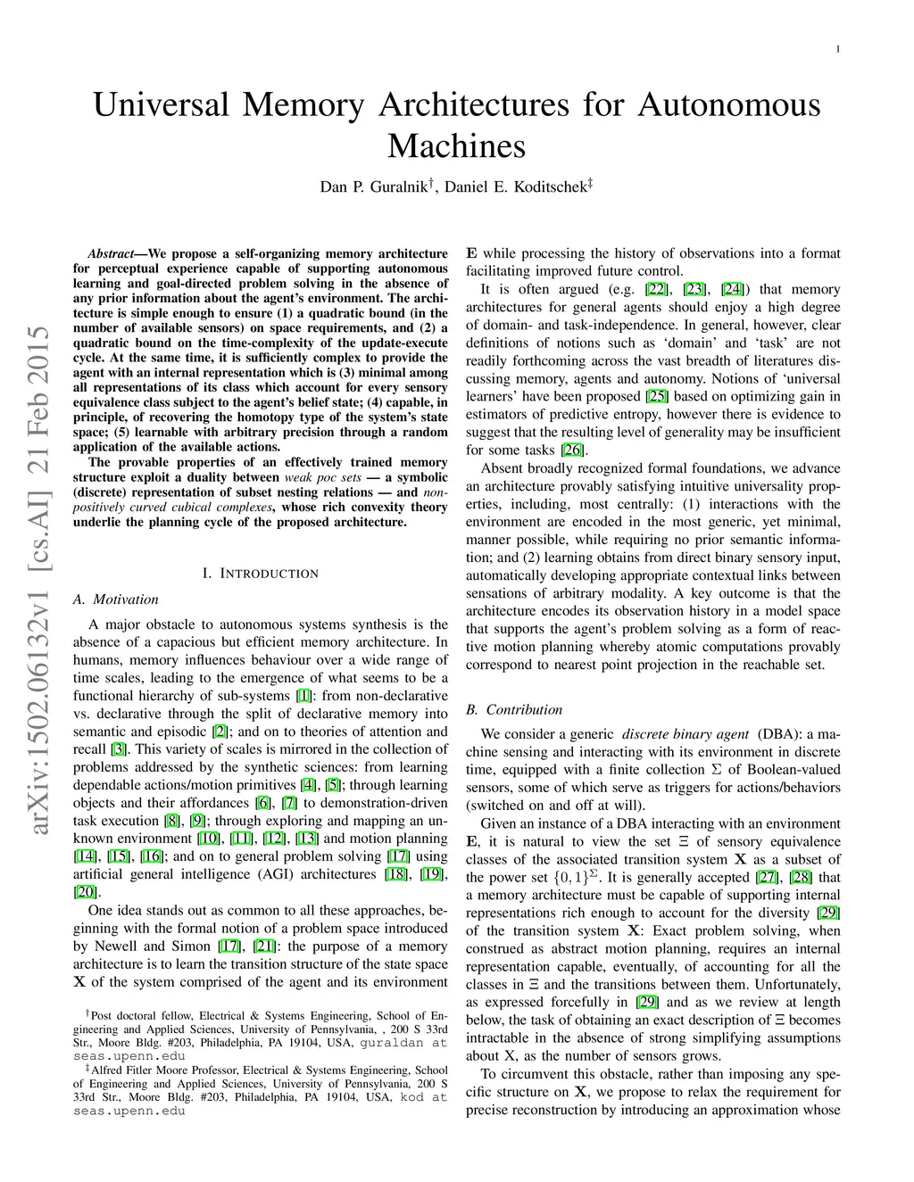 Universal Memory Architectures for Autonomous Machines
