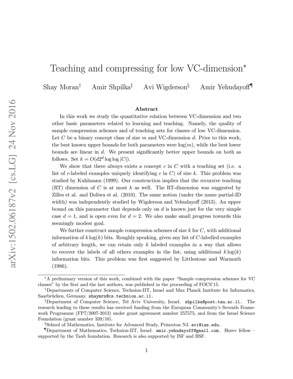Teaching and compressing for low VC-dimension