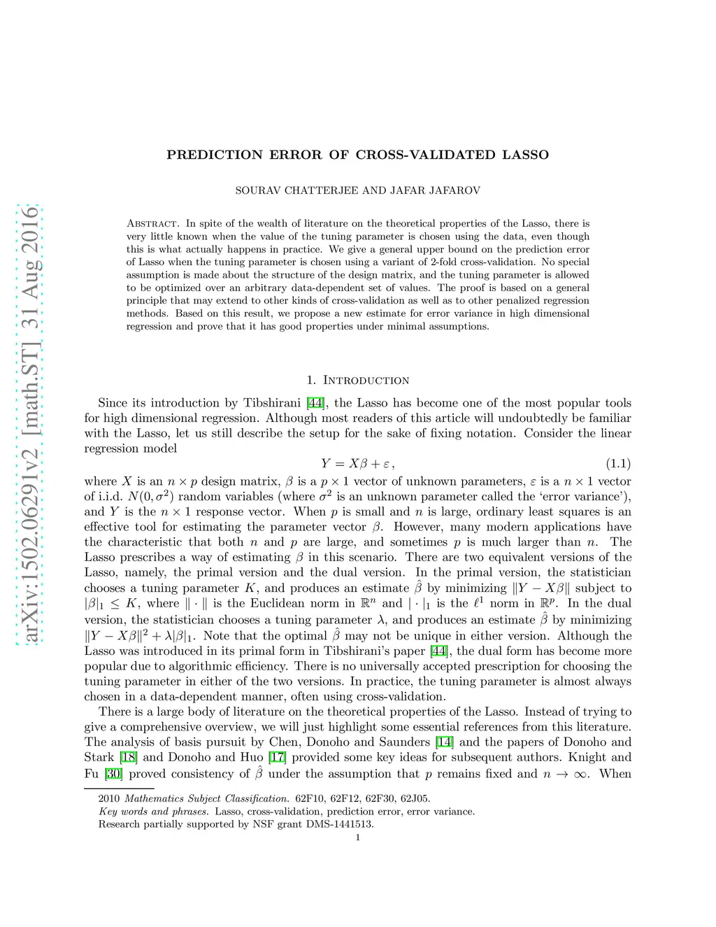 Prediction error of cross-validated Lasso