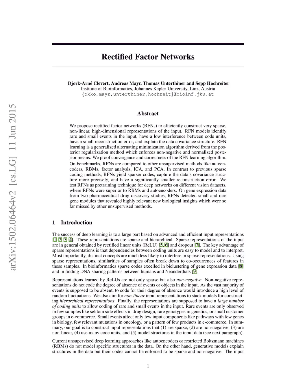 Rectified Factor Networks