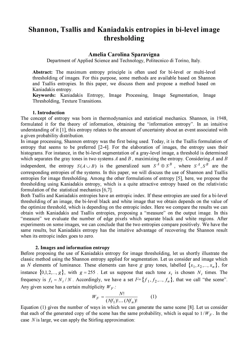 Shannon, Tsallis and Kaniadakis entropies in bi-level image thresholding