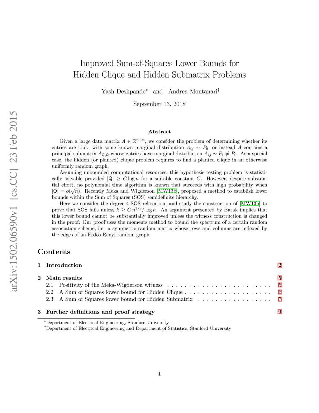 Given a large data matrix , we consider the problem of determining whether its entries are i.i.d. with some known marginal distribution , or instead contains a principal submatrix whose entries have marginal distribution . As a special case, the hidden (or planted) clique problem requires to find a planted clique in an otherwise uniformly random graph. Assuming unbounded computational resources, this hypothesis testing problem is statistically solvable provided for a suitable constant . However, despite substantial effort, no polynomial time algorithm is known that succeeds with high probability when . Recently Meka and Wigderson \cite{meka2013association}, proposed a method to establish lower bounds within the Sum of Squares (SOS) semidefinite hierarchy. Here we consider the degree- SOS relaxation, and study the construction of \cite{meka2013association} to prove that SOS fails unless . An argument presented by Barak implies that this lower bound cannot be substantially improved unless the witness construction is changed in the proof. Our proof uses the moments method to bound the spectrum of a certain random association scheme, i.e. a symmetric random matrix whose rows and columns are indexed by the edges of an Erd\"os-Renyi random graph.