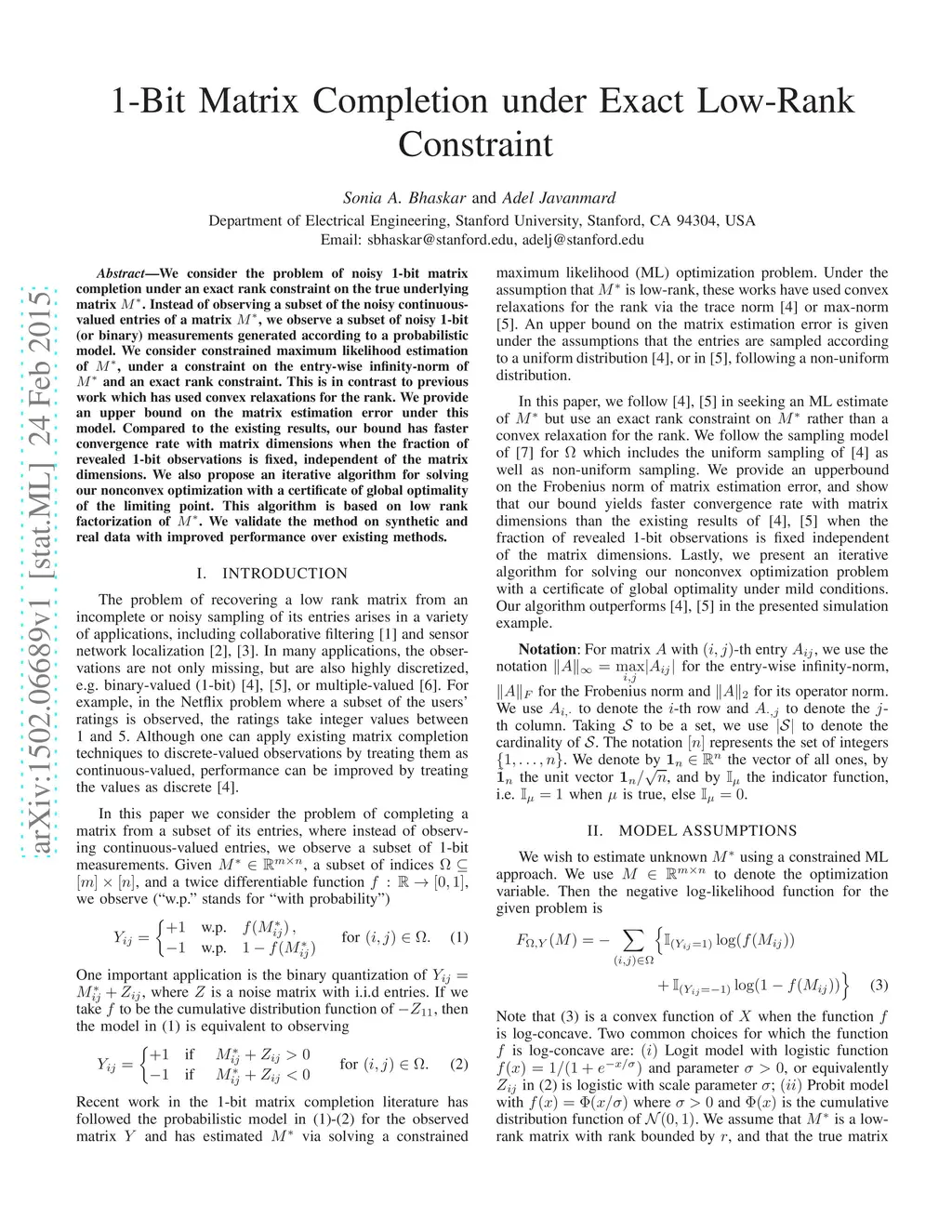 1-Bit Matrix Completion under Exact Low-Rank Constraint