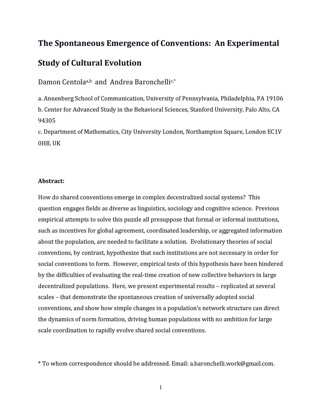 The Spontaneous Emergence of Conventions: An Experimental Study of