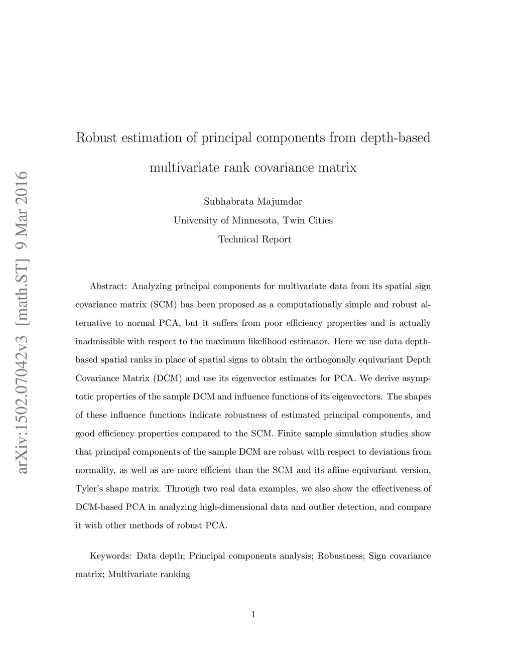 Analyzing principal components for multivariate data from its spatial sign covariance matrix (SCM) has been proposed as a computationally simple and robust alternative to normal PCA, but it suffers from poor efficiency properties and is actually inadmissible with respect to the maximum likelihood estimator. Here we use data depth-based spatial ranks in place of spatial signs to obtain the orthogonally equivariant Depth Covariance Matrix (DCM) and use its eigenvector estimates for PCA. We derive asymptotic properties of the sample DCM and influence functions of its eigenvectors. The shapes of these influence functions indicate robustness of estimated principal components, and good efficiency properties compared to the SCM. Finite sample simulation studies show that principal components of the sample DCM are robust with respect to deviations from normality, as well as are more efficient than the SCM and its affine equivariant version, Tyler's shape matrix. Through two real data examples, we also show the effectiveness of DCM-based PCA in analyzing high-dimensional data and outlier detection, and compare it with other methods of robust PCA.
